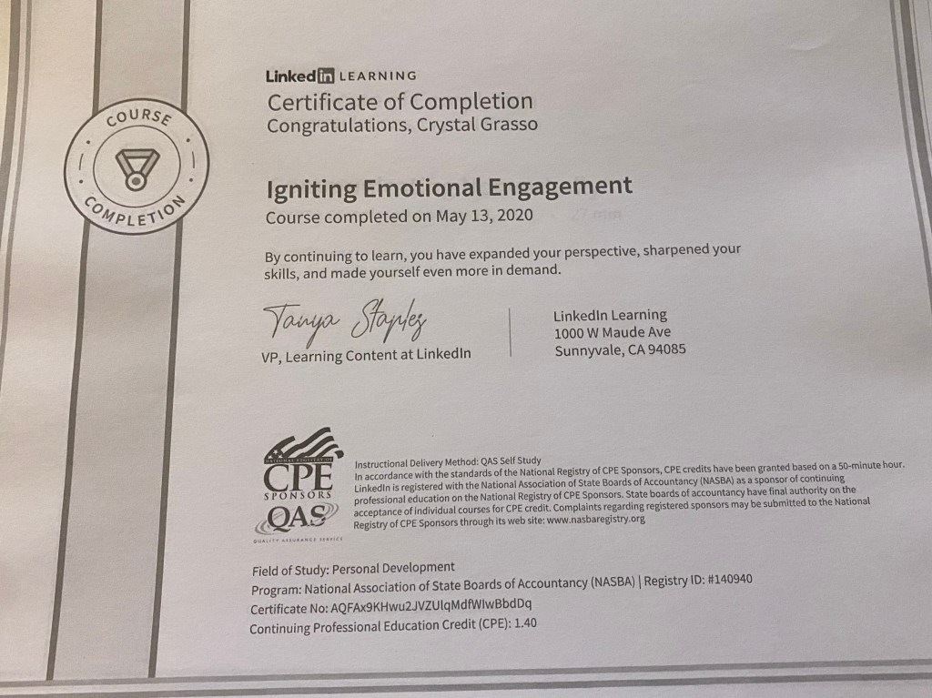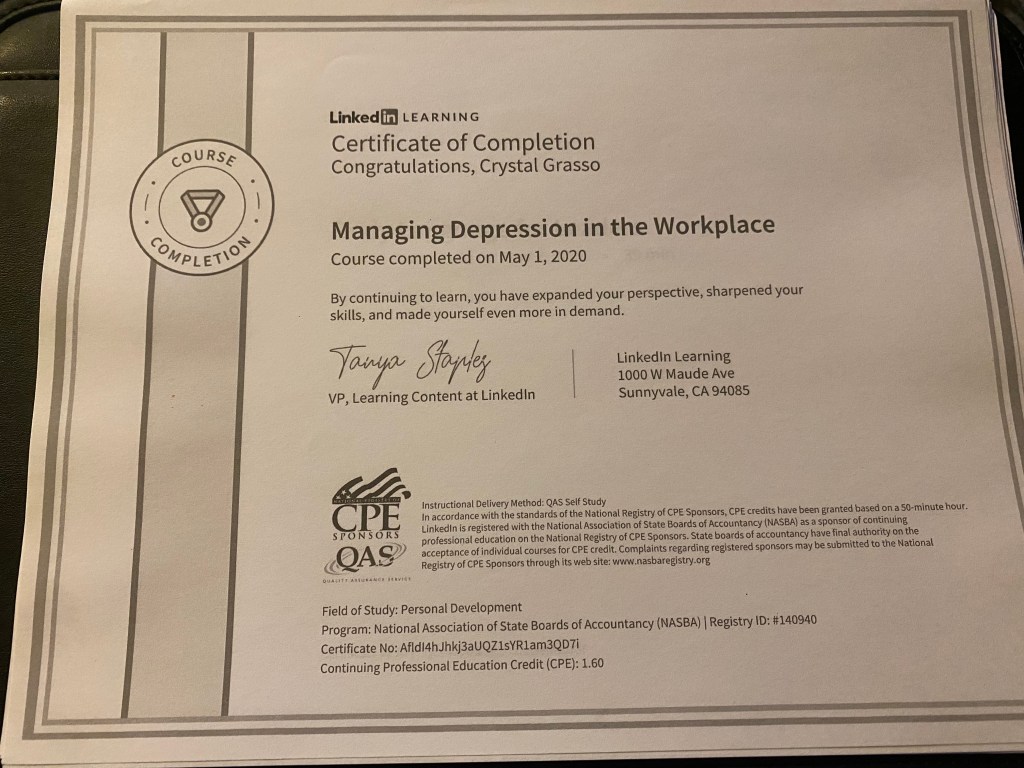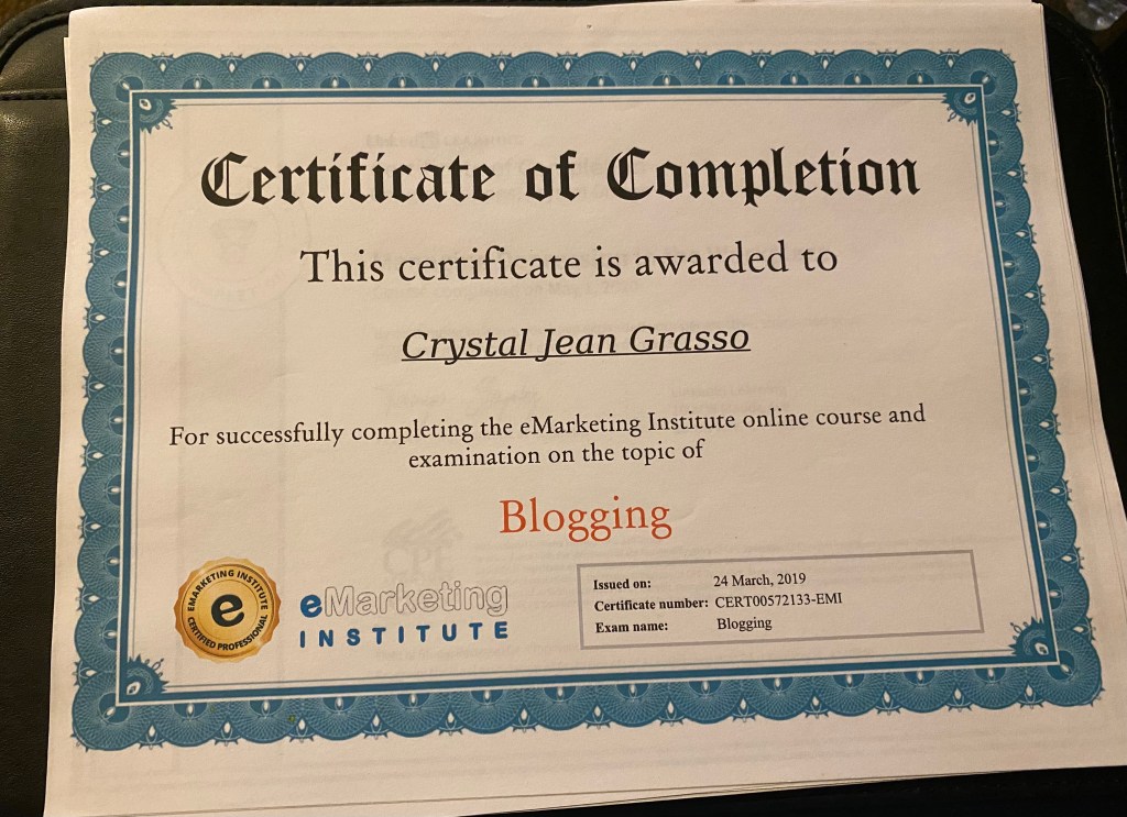 These are the certifications and credentials of the creator of this website, Crystal Grasso. She has put a lot of hard work, time, and money into her work. She believes in transparency and is an open book. If you have any questions you would like to ask her, you can email her at motivationalcopingandhealing@gmail.com.